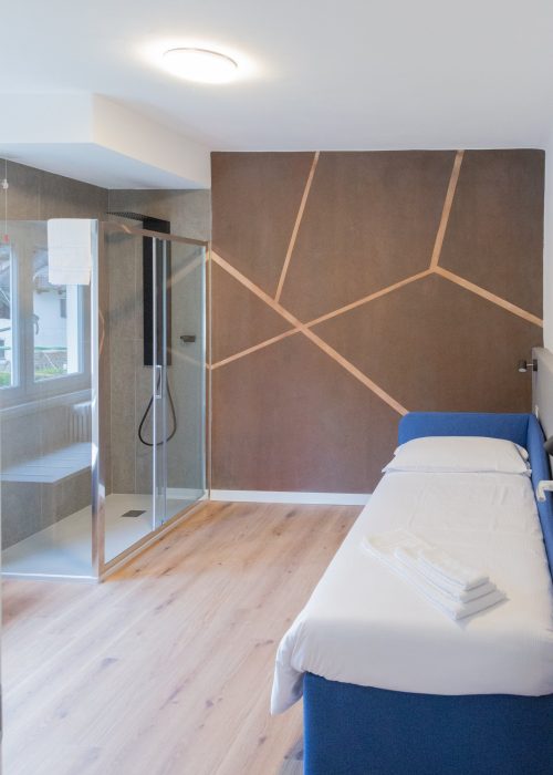 Accogliente e funzionale, la nostra camera singola è ideale per chi viaggia da solo e cerca tranquillità senza rinunciare al comfort. Arredata in stile vintage, offre un ambiente semplice ma curato, con Wi-Fi gratuito, bagno privato e balcone con vista sulle montagne della Valle Vigezzo. Perfetta per una pausa rilassante tra natura e cultura, a pochi passi dal centro storico di Malesco.