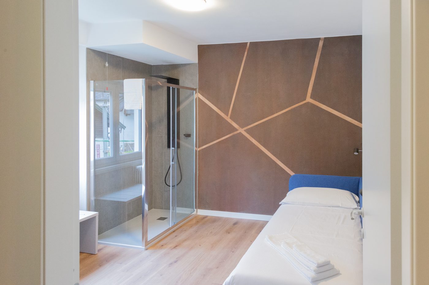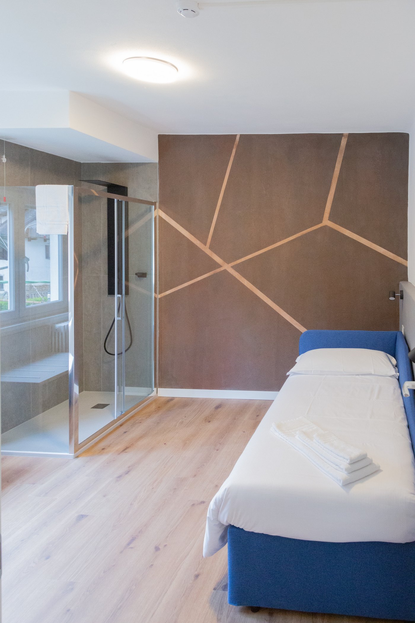 Accogliente e funzionale, la nostra camera singola è ideale per chi viaggia da solo e cerca tranquillità senza rinunciare al comfort. Arredata in stile vintage, offre un ambiente semplice ma curato, con Wi-Fi gratuito, bagno privato e balcone con vista sulle montagne della Valle Vigezzo. Perfetta per una pausa rilassante tra natura e cultura, a pochi passi dal centro storico di Malesco.
